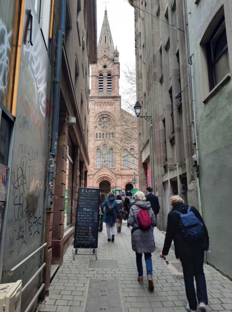 Auf dem Rückweg, vorbei an der Synagoge und dem Dom, mit einem kurzen Blick auf seinen älteren romanischen Teil, fiel das Palais Rohan mit seiner bedeutenden Gemäldesammlung auf. Bei der Gruppe festigte sich zunehmend der Gedanke, dass Straßburg immer einen Besuch wert sein würde.