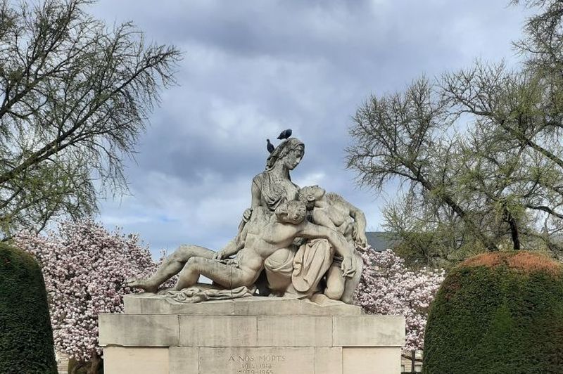 Monument Aux Morts - Kriegerdenkmal | © Eva Opitz Wilhelm I. mitten im Park wich nach dem ersten Weltkrieg einem Kriegerdenkmal mit der Aufschrift „A Nos Morts“, das die „Mutter Elsass“ jeweils mit einem toten deutschen und französischen Sohn zeigt.